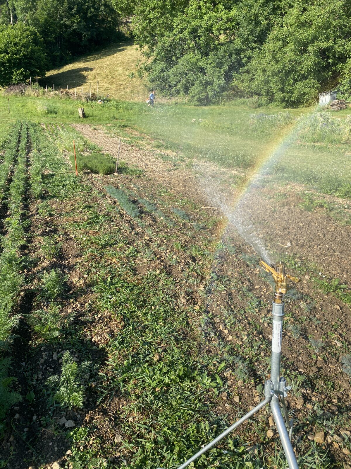 Eigentlich jetzt schon, da draussen nur Mörgen und Abende angenehm sind. Zwischendrin ist es fast unmöglich einen klaren Kopf zu behalten. Da wir fast Nonstop irgendwo am Bewässern sind, kann frau sich jeweils einen Sprühregen gönnen… das erleichtert die Arbeit etwas.