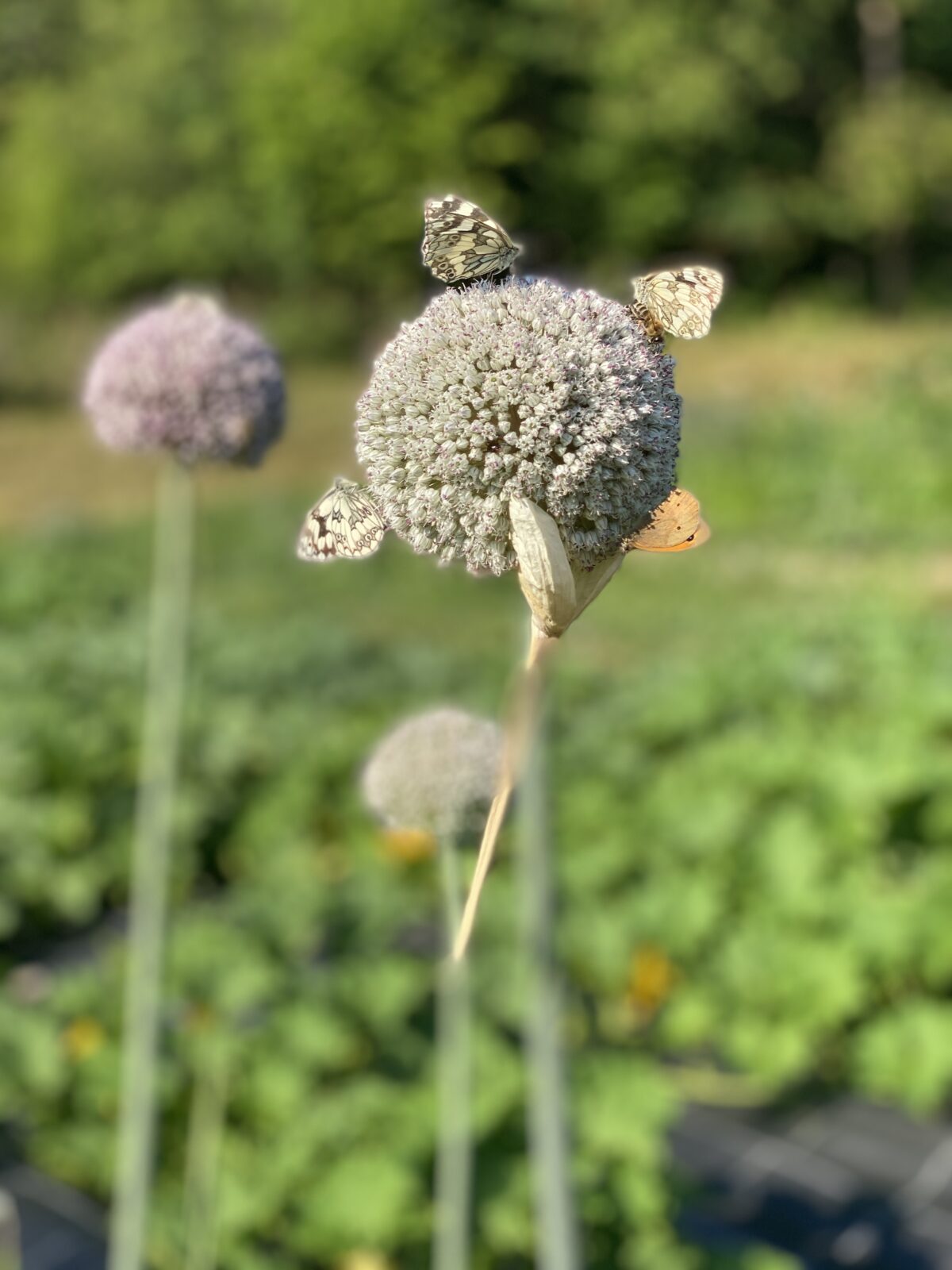 Ja, der Sommer ist da und damit kreucht und fleucht es wieder überall. Nicht nur auf dem blühenden Lauch, sondern zum Beispiel auch bei den Kirschen. Kirschen wären nämlich in eurem Korb, wenn da nicht die ungeliebte Kirschessigfliege die Ernte vermiesen würde… Letzte Woche starteten wir einen Ernteversuch, der gänzlich scheiterte, da jedes 2. Kirsi bereits verfault/befallen war. Mit viel Sortieraufwand haben wir für die wenigen grossen Körbe ein Probiererli der wunderbaren Sorte Kordia zusammenbekommen, und aber einsehen müssen, dass mehr als die paar Kilos nicht drin liegen. Dieses Jahr also keine Ernte von den prächtigen Hochstammkirschbäumen. Ohne Isolation mittels Netzen, was bei Hochstämmen nicht machbar ist, gibt es keine Bio-Kirschen mehr. Vor vielen Jahren konnte der Hof Baselmatt, wie viele andere, tonnenweise Kirschen ablesen. Tempi passati.