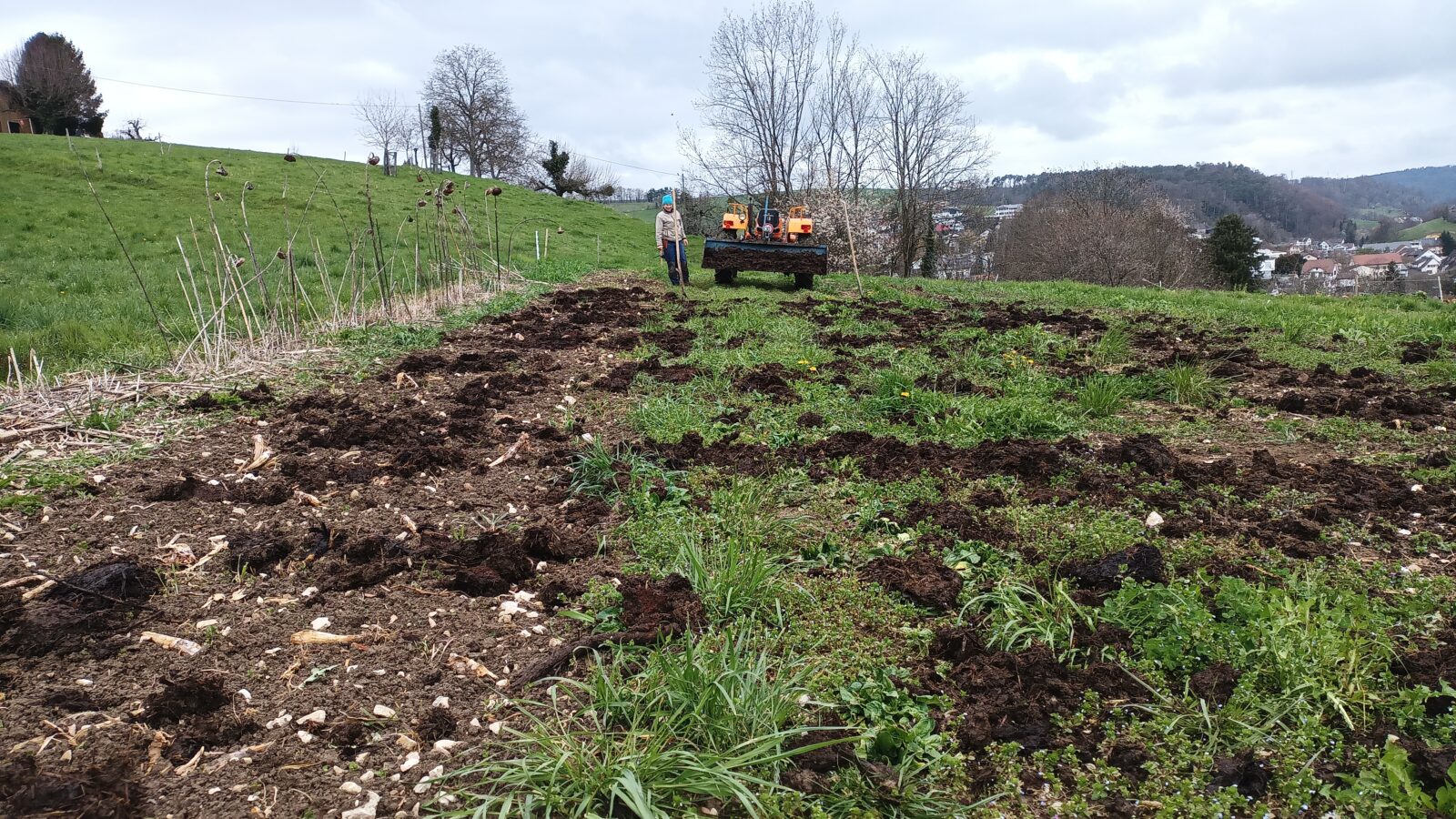Die letzten Tage war der Frühling kurz still gestanden, Säerei und Pflanzerei haben dadurch eine Pause eingelegt und somit konnten wir uns dem Kompost und der baldigen Kürbis/Zucchiniparzelle widmen.