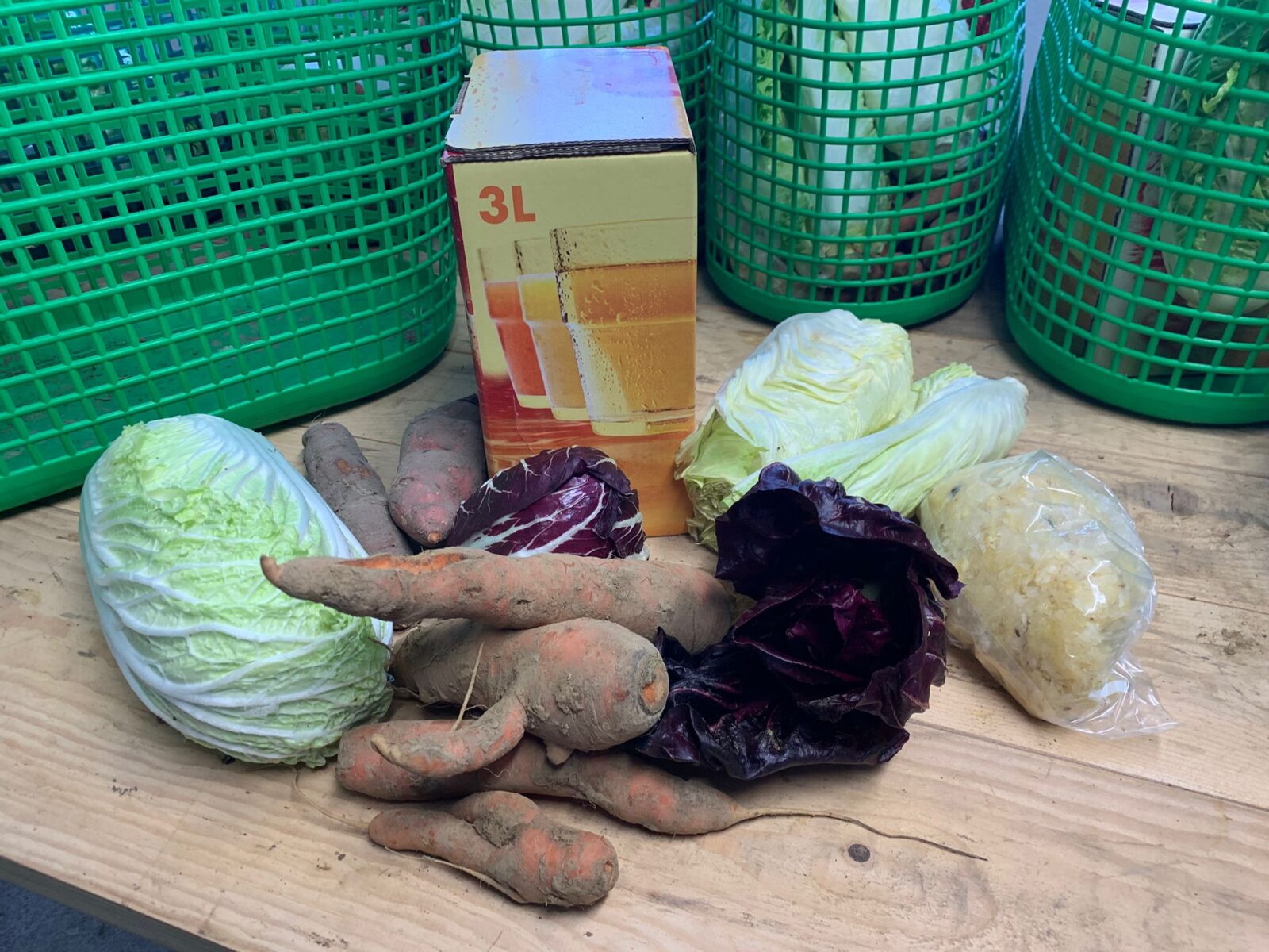 Zuckerhut, Kürbis, Süsskartoffeln, Chinakohl und violetter & grüner Federkohl.