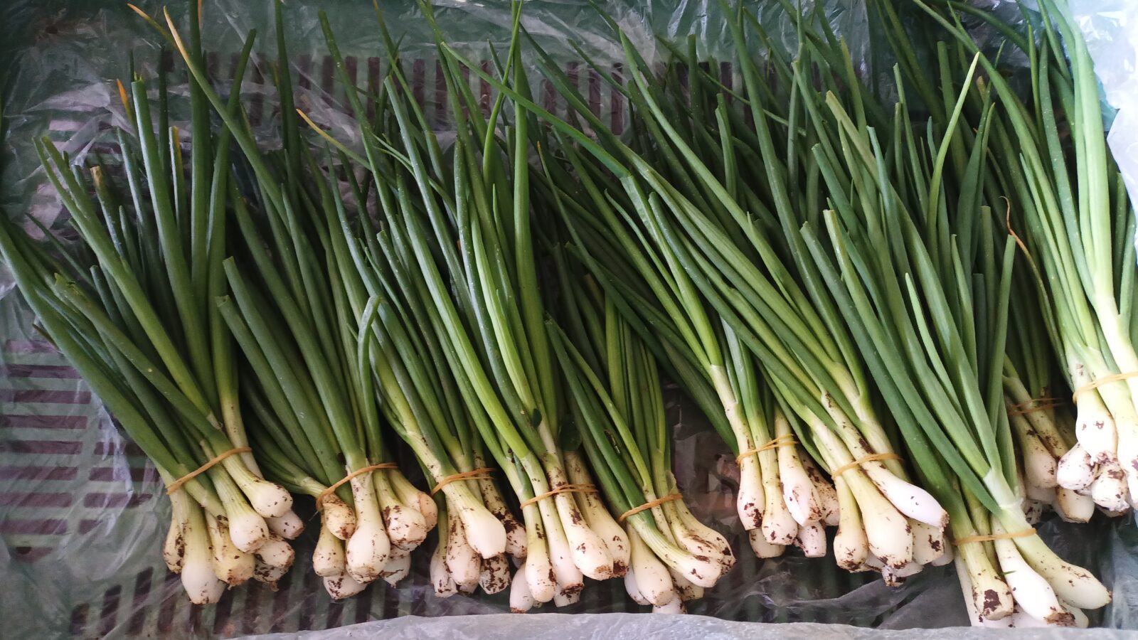 Die Frühlingszwiebeln, auch Lauchzwiebeln, Winterheckenzwiebeln oder Schaftzwiebeln genannt, haben auf dem Feld überwintert und sind die letzten Wochen fleissig gewachsen. Angeblich wurden Lauchzwiebeln schon ca. 2000 v. Chr. in China angebaut. Via Russland kamen sie dann im 17. Jahrhundert nach Europa.